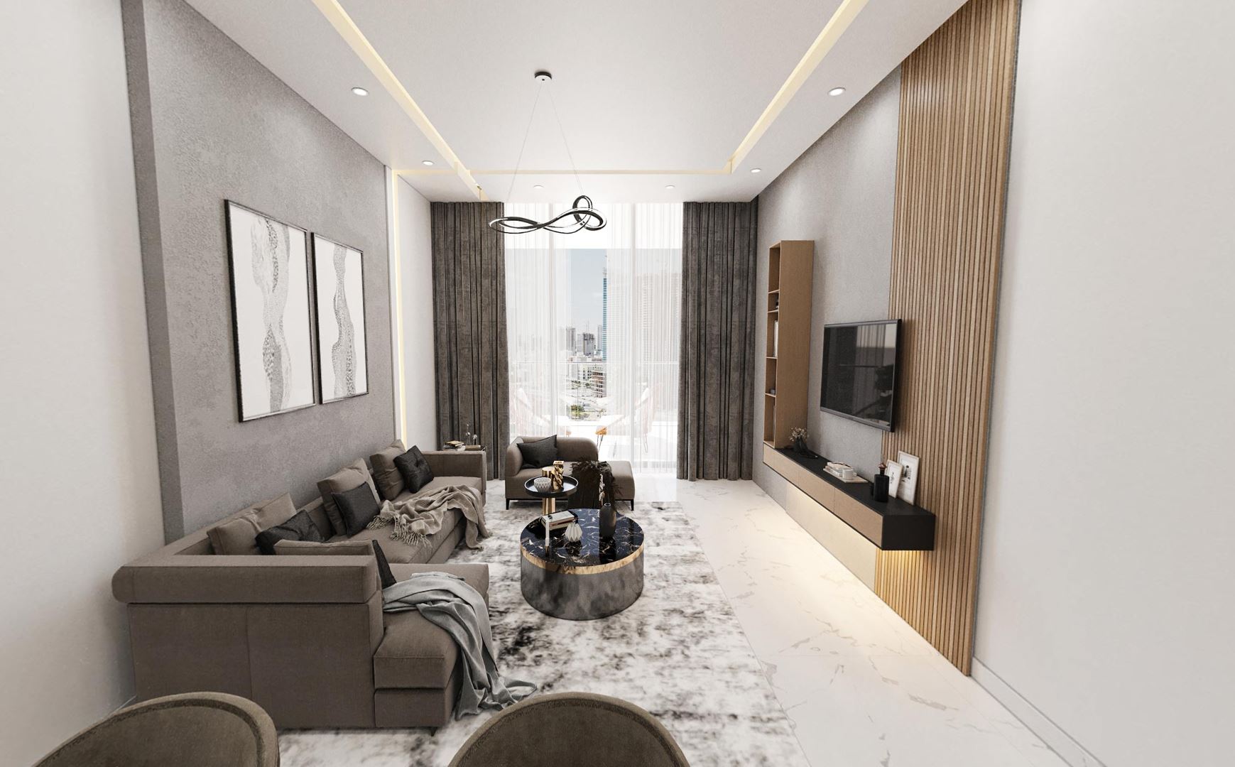 AG 7EVEN is a luxurious residential development that presents a collection of refined and sophisticated modern studio, 1, and 2-bedroom apartments. Designed with meticulous attention to detail, these apartments offer an exceptional living experience for discerning individuals. Step into AG 7EVEN and be greeted by lavish living rooms that exude elegance and style. The interiors are thoughtfully designed, featuring sleek and contemporary finishes that create a chic and inviting atmosphere. Large and open windows allow natural light to flood the space, creating a vibrant and uplifting ambiance. Every occasion becomes a celebration as the living rooms become the perfect backdrop for entertaining guests or simply enjoying quality time with loved ones.