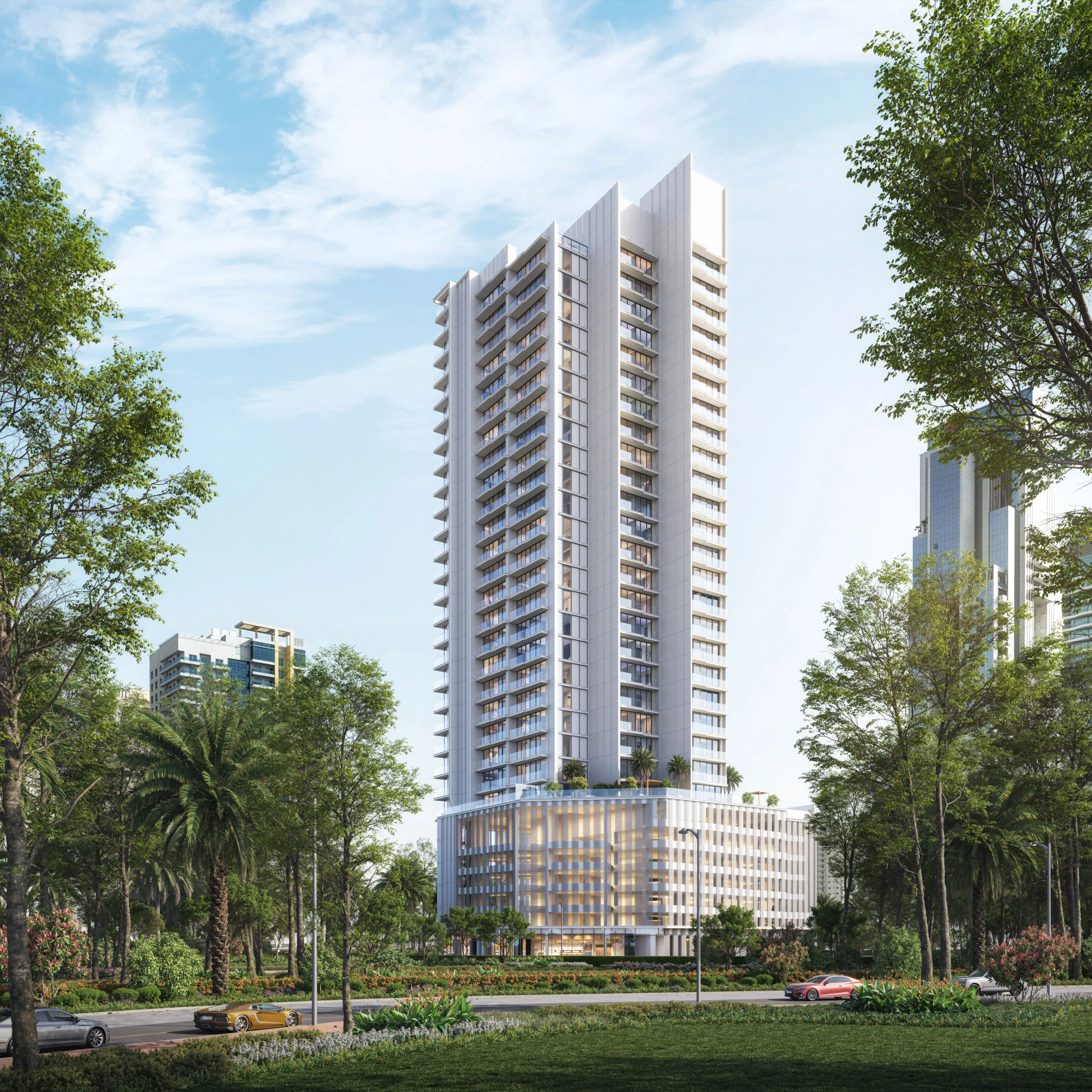 Residents enjoy an exceptional collection of amenities that create a true resort-style experience within the building. These include a stunning swimming pool with lounge areas, a state-of-the-art gym, pickleball court, mini golf park, silent cinema, children’s play zones, outdoor workout spaces, yoga and meditation decks, BBQ areas, co-working spaces, and beautifully designed rooftop terraces and observatory decks. Every amenity is carefully integrated to support wellness, leisure, productivity, and family-friendly living.
