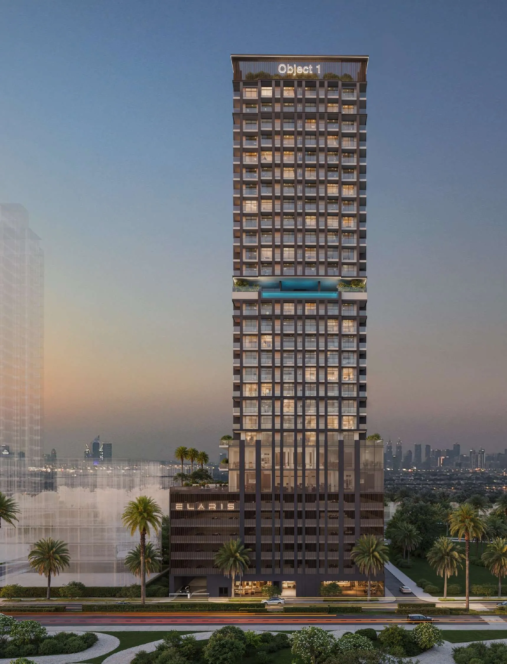 Azha Millennium Residences rises as an architectural expression of elegance and movement, characterized by clean vertical lines, sculpted contours, and a graceful silhouette that reflects the philosophy of living “with purpose and artistry”. Set within Jumeirah Village Triangle, the tower blends hospitality-driven design with contemporary residential comfort, creating a refined sanctuary surrounded by green spaces, tranquil pathways, and views of the evolving Dubai skyline. Its composition balances sophistication with serenity, offering a lifestyle shaped by beauty, light, and connection.