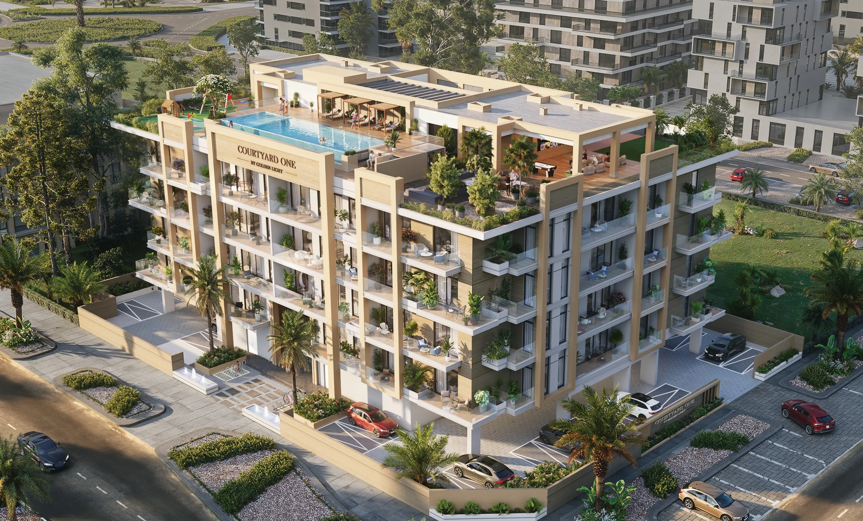 Courtyard One is envisioned as a modern oasis rising from the desert landscape, inspired by the idea of sanctuary and balance. Designed as a boutique residential address, it blends contemporary architecture with a strong sense of community, creating a refined environment where calm and connectivity coexist. The concept centers around a beautifully designed courtyard — the heart of the development — where nature, light, and open space shape a lifestyle defined by harmony and belonging.