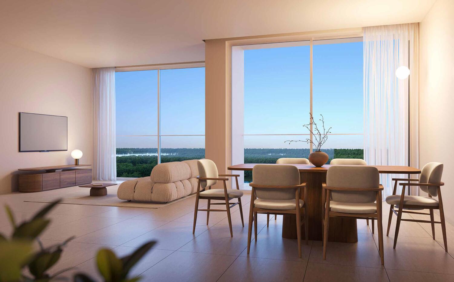 The residences are crafted for those who appreciate both luxury and livability. Each apartment, from one to three bedrooms, features spacious interiors, high ceilings, and panoramic floor-to-ceiling windows that invite in natural light and breathtaking views. Designed with premium finishes, smart layouts, and fully equipped kitchens with European appliances, these homes combine timeless materials with modern function to create a seamless, stylish sanctuary for everyday life.