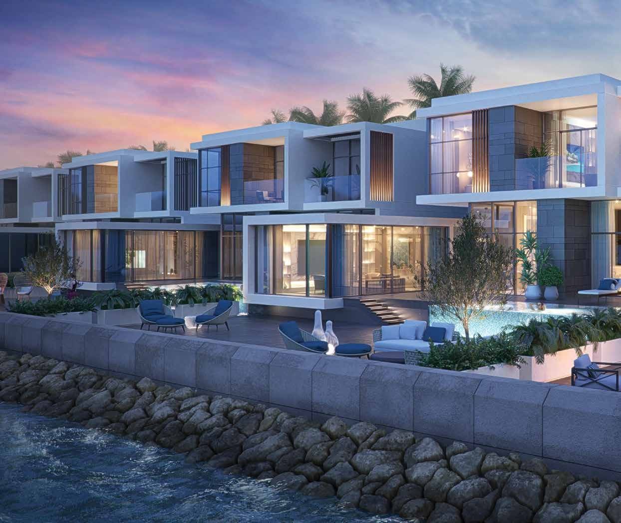 Villas&Townhouses. The interiors make a statement with their open plan living, dining, and kitchen space and the showpiece staircase links the ground level and the first floor with an accent stone wall. Echoing a high-end beach resort inspired feel, the interiors feature modern materials and details. Every detail makes life here extraordinary and carefree. Watch the sunrise from one of the expansive and luxurious 4-bedroom villas with direct beach access or an incredible first-row sea view.Â