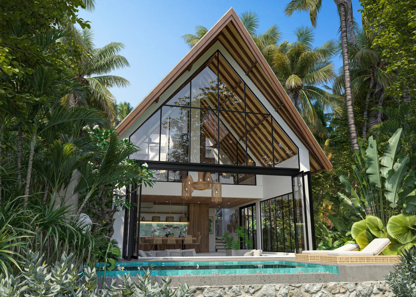 The Hut. The tropical theme of these villas carries throughout the interior design, with eye-catching details and finishes. Every part of The Hut has been designed to be Instagram-worthy, helping to ensure high occupancy rates and happy guests.Â