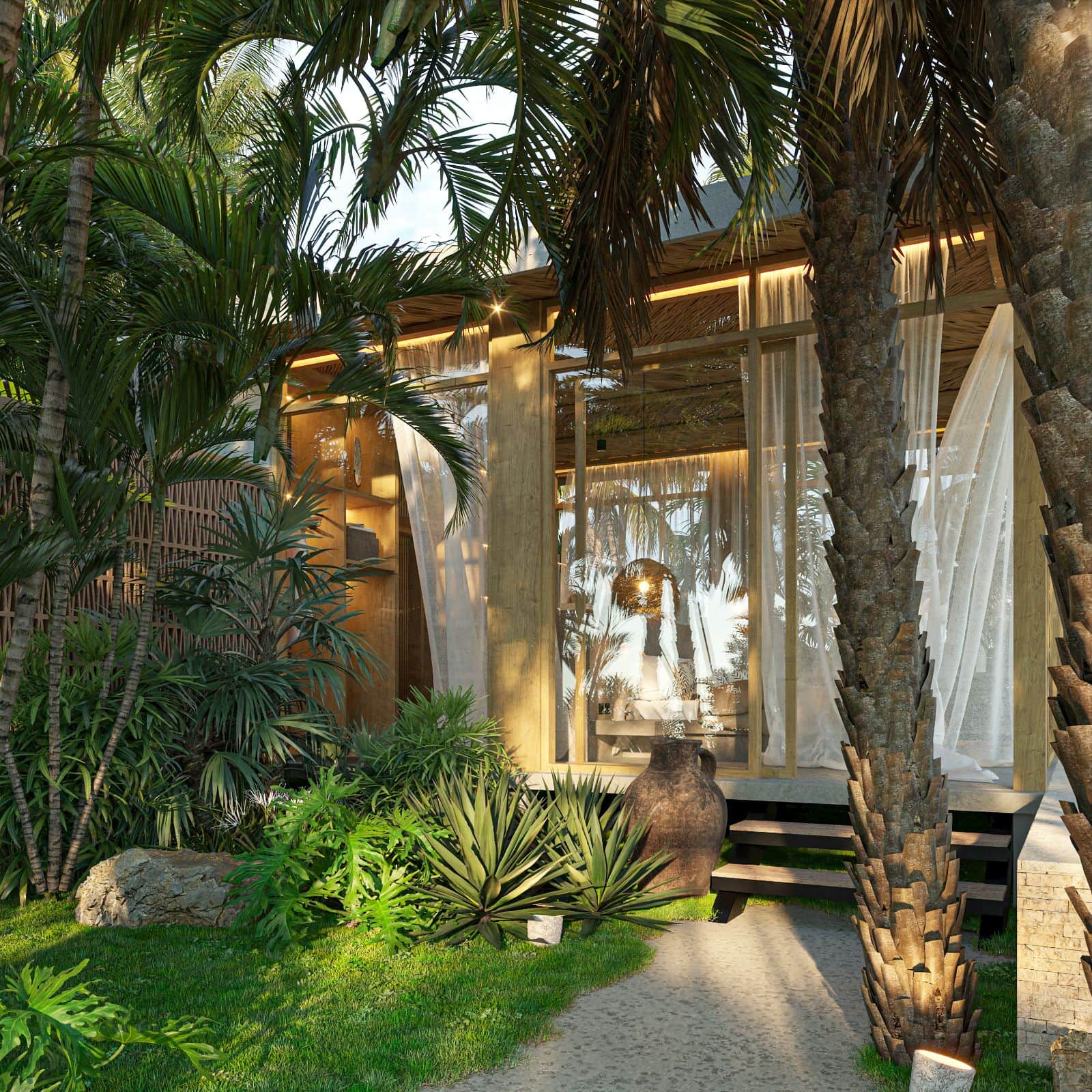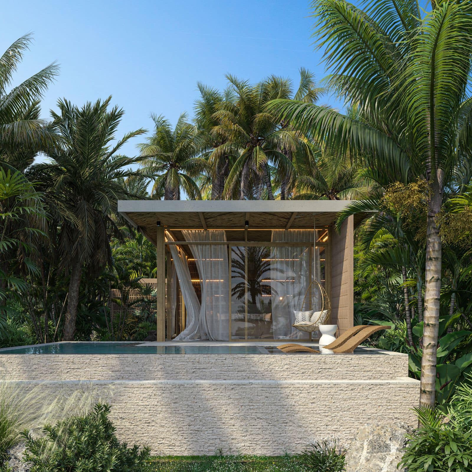 Casita Pasir, Hitam. The tropical theme of these villas carries throughout the interior design, with eye-catching details and finishes. Every part of Casita Pasir has been designed to be Instagram-worthy, helping to ensure high occupancy rates and happy guests.