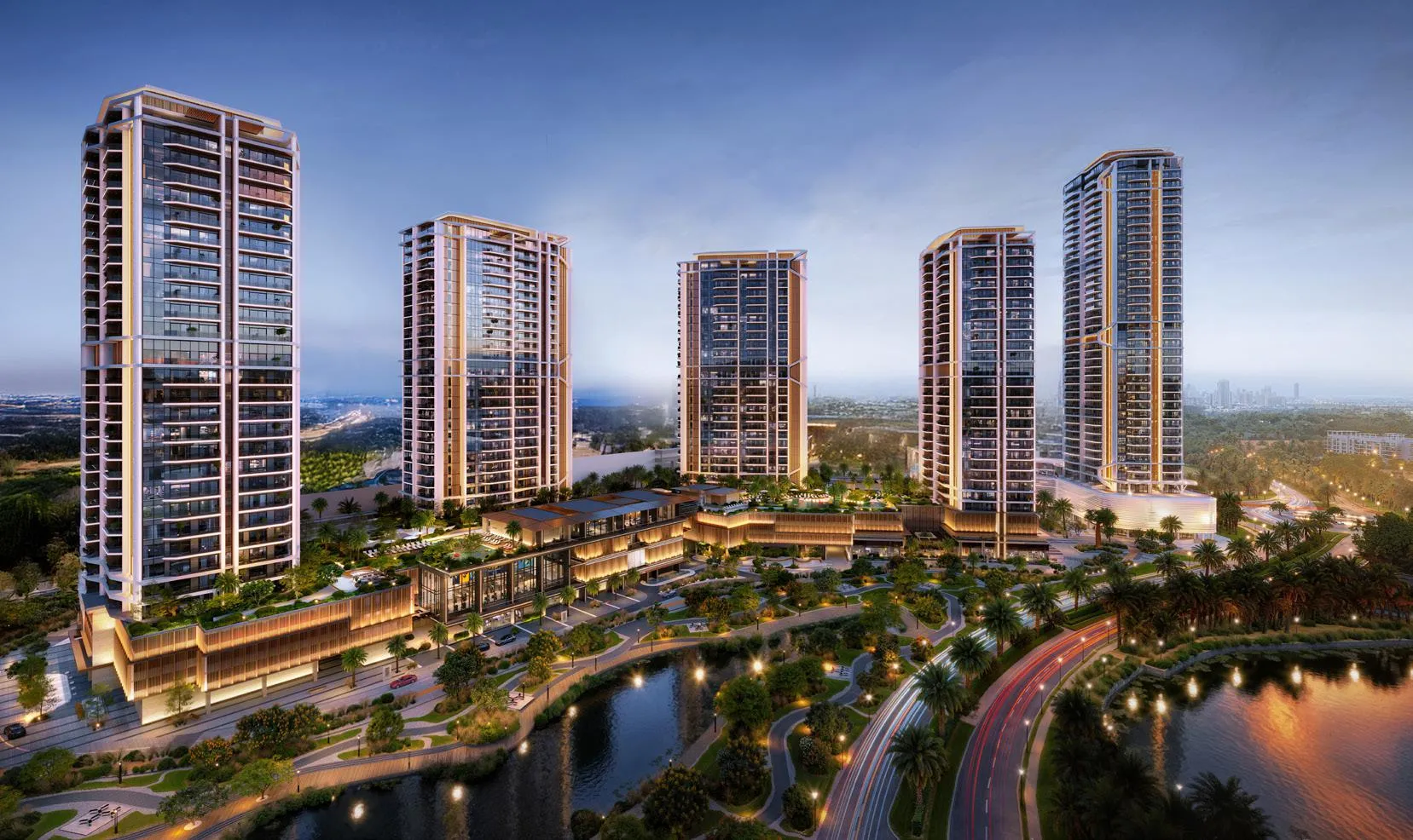 Eltiera Views introduces the next evolution of refined residential architecture within the tranquil landscape of Jumeirah Islands. With Towers 1 and 2 now launching, the project reveals a fluid, contemporary aesthetic that mirrors its natural surroundings — sculpted greens, serene lakes, and distant waterfronts. Soft silhouettes, layered façades, and expansive glass surfaces create a harmonious architectural rhythm, allowing the buildings to blend seamlessly into their environment. Designed as an expression of calm sophistication, Eltiera Views elevates everyday living into an art form.