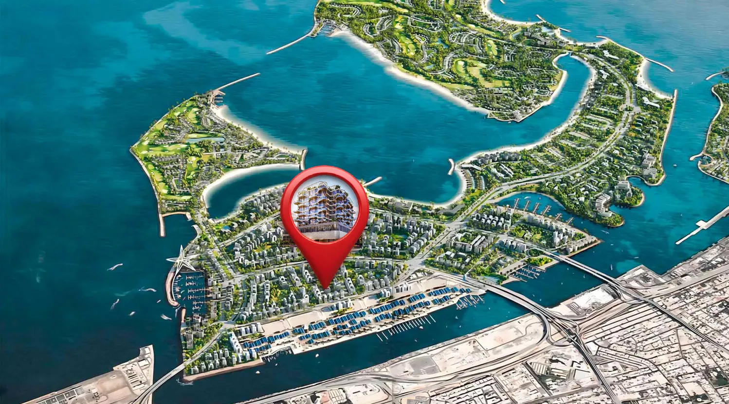 The islands are connected to the mainland via well-developed infrastructure, ensuring seamless access to the rest of the city. This prime location allows residents and visitors to enjoy the tranquility of island life while being just a short drive away from Dubai's bustling urban centers, including the iconic landmarks and vibrant districts such as Downtown Dubai, Dubai Marina, and Palm Jumeirah. The development includes a range of upscale amenities, including luxury hotels, gourmet dining options, high-end retail outlets, and world-class recreational facilities.