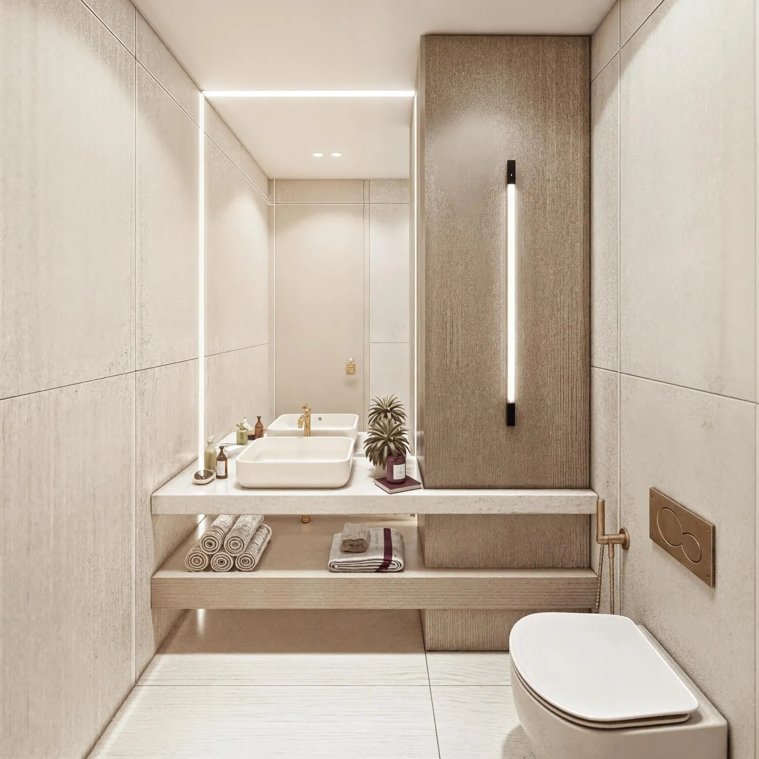 The interiors are fully furnished, featuring seamless layouts, refined material palettes, and integrated smart home systems. Finishes include warm natural textures, elegant stone surfaces, soft neutral tones, and premium fabrics selected to evoke calm and continuity. Every residence is equipped with modern, integrated elements that blend functionality with a sense of quiet luxury, reflecting the project’s overarching design philosophy.