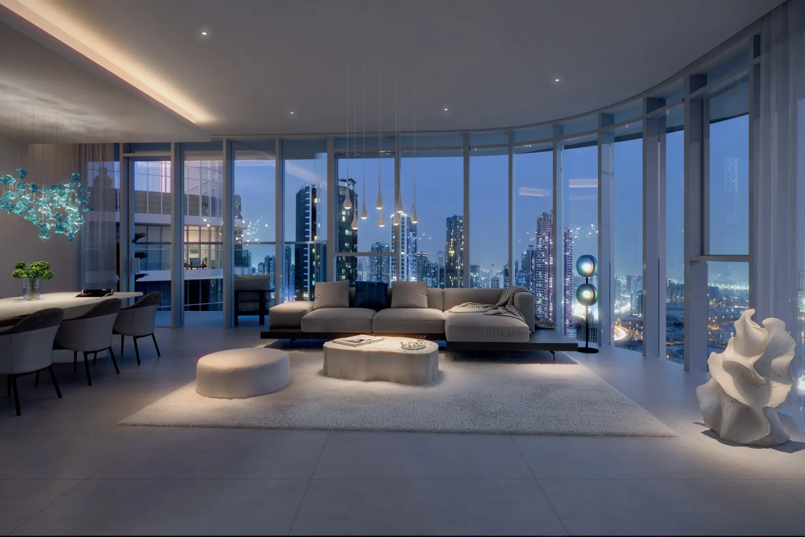 The project delivers a fully integrated lifestyle supported by a comprehensive range of amenities and on-site conveniences. Residents enjoy access to a fully equipped gymnasium with separate male and female wellness blocks featuring sauna and steam rooms, as well as swimming and kids’ pools, a padel court, running track, and dedicated children’s play areas. Social and everyday needs are addressed through a multipurpose hall, café, prayer rooms, nursery, and retail spaces at ground level. The living environment is enhanced by controlled service circulation, 24/7 concierge support, restricted smart access for residents, and a full maintenance team on site, while every residence is equipped with smart home technology for added comfort and security.