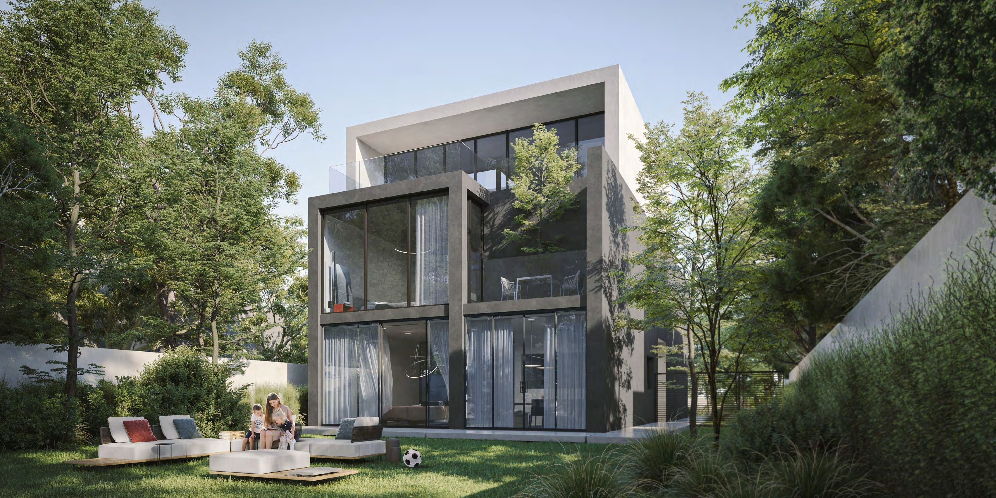 Featuring superb contemporary design and an array of indoor and outdoor living and entertainment spaces, the Five Bedroom Jouri Hills Villa is a signficant lifestyle statement in its own right. The use of smart technology and floor- to-ceiling windows help to deliver the feeling of a truly modern lifestyle.  This home features a master bedroom on the second floor with two terraces, as well as ensuite bathrooms for the four other bedrooms.