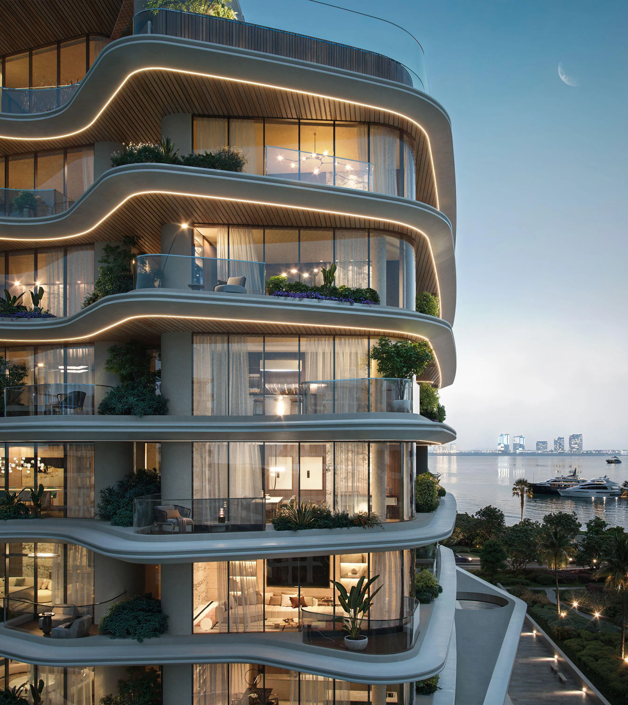 Lia by Avenew Development is a sculptural seaside residence located within Dubai Islands, where architecture is shaped by the dialogue between sea and sky. The building rises with fluid, wave-like forms, offering sweeping open views over the Arabian Gulf and the marina. The project presents a refined collection of one- and two-bedroom residences, spacious three-bedroom family homes, and exclusive penthouses crowned with private rooftop pools. Interiors are designed with balanced proportions, floor-to-ceiling windows, and carefully curated layouts that emphasize light, openness, and a calm, elevated coastal lifestyle.