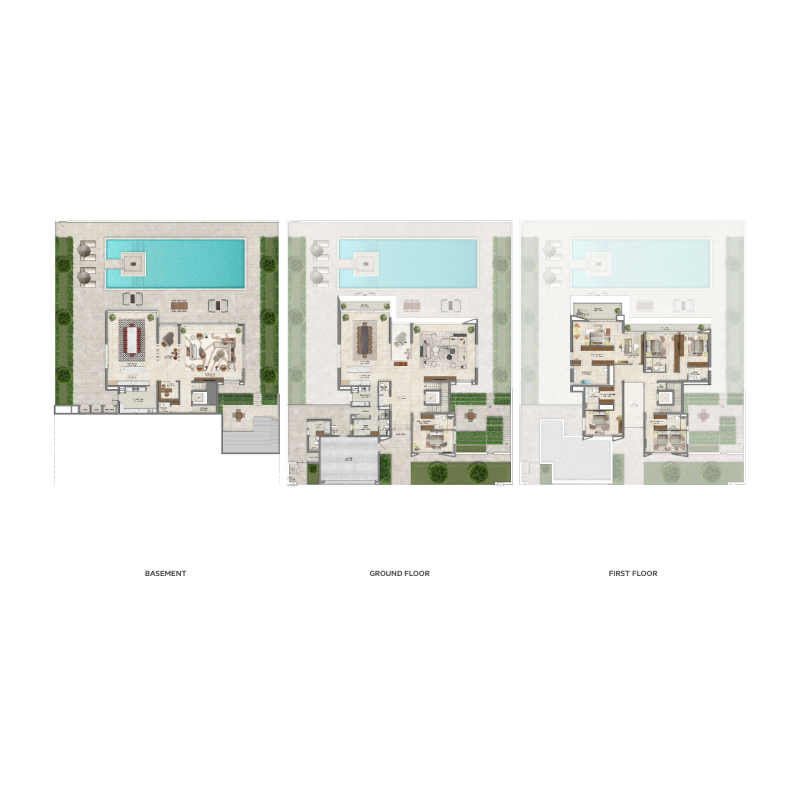 Villas comprising 5- and 6-bedrooms feature exteriors designed to maximize views of water canals and public spaces, immersing residents in the beauty around them. Each unit meets comprehensive service requirements, including a lift and a dedicated driver’s room annex, encapsulating all aspects of convenience and functionality.