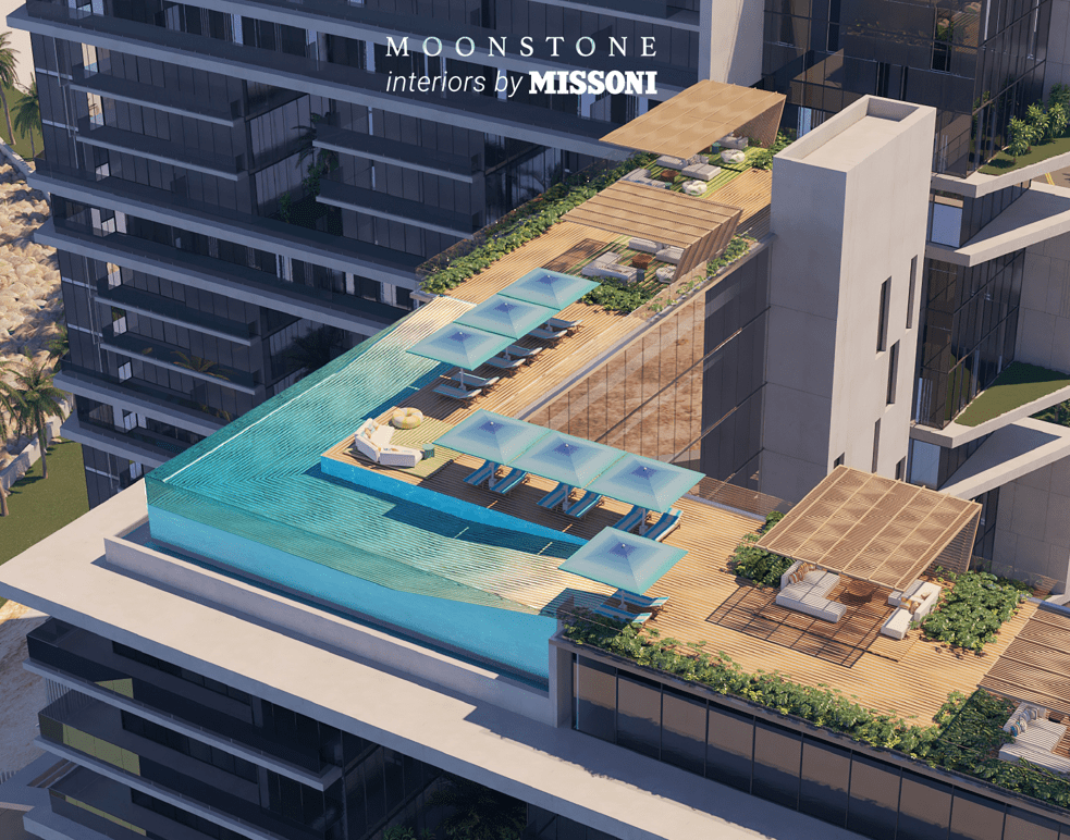 The design concept of the development was inspired by the coral, which is the meaning behind the name ‘Al Marjan’. The building's M-shape was derived from the Moonstone, a beautiful type of coral, and was created to maximize the sea view from each apartment and room.Â