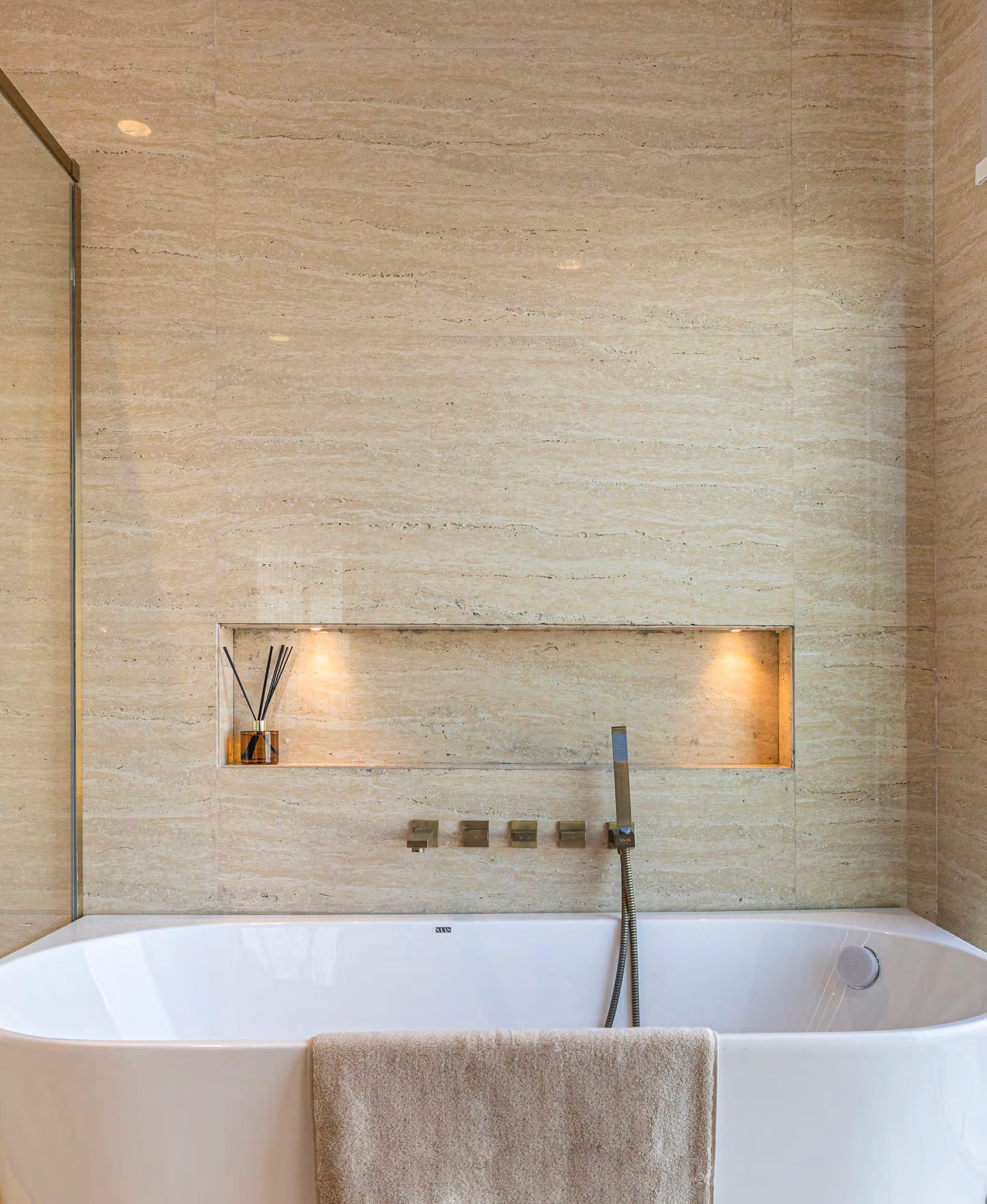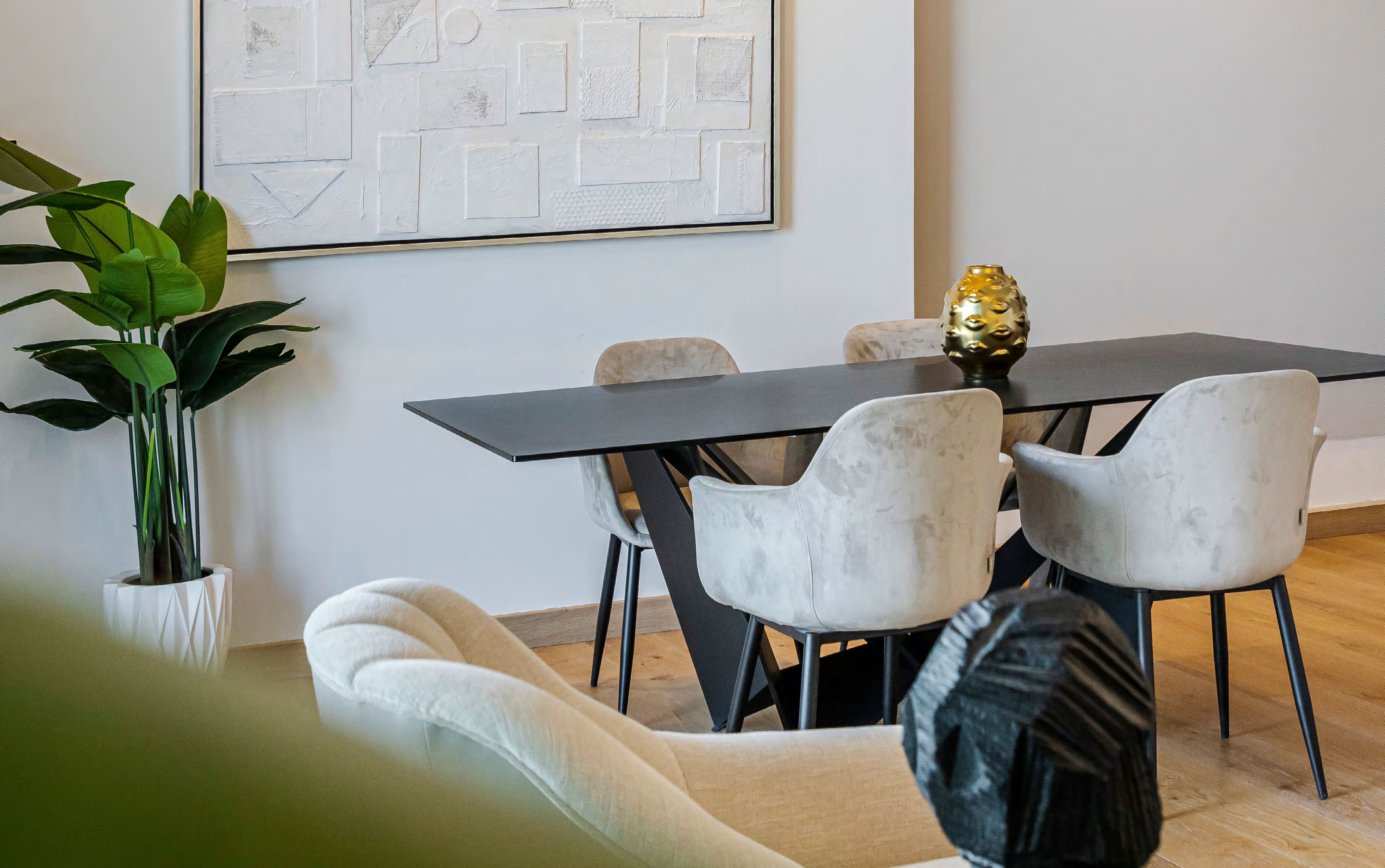 Designed to give you peace and tranquillity, the living rooms are spacious and minimal.  This creates an open and inviting space that allows you to focus on the things that matter most, whether it’s catching up with loved ones, or simply taking a moment to breathe. Wake up to the warm glow of the morning sun streaming through the floor-to-ceiling windows. With natural light and neutral décor, the open concept layout allows for plenty of breathing space and a sense of calm, an inviting way to start each day feeling refreshed and rejuvenated.
