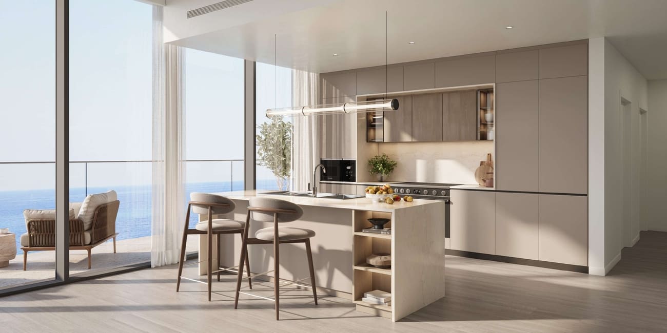 The development showcases a contemporary aesthetic that harmonizes with its coastal surroundings. Featuring sleek glass facades, expansive balconies, and minimalist yet elegant interiors, Skai Mina exudes a sense of openness and tranquility. The residences are designed to maximize natural light, with floor-to-ceiling windows that provide uninterrupted views of the sea, marina, or skyline.