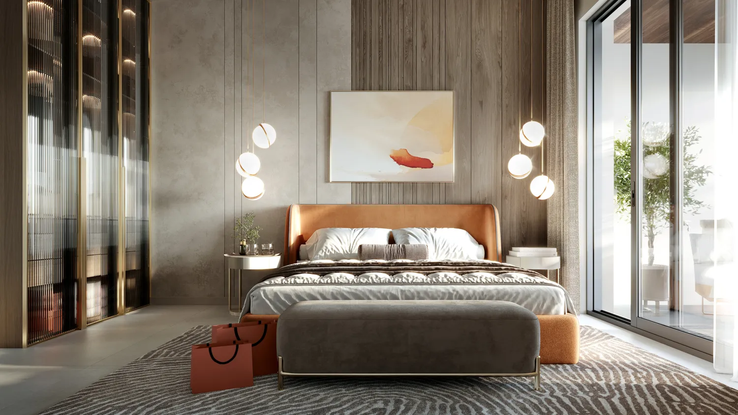 The interiors follow a clean, contemporary aesthetic, using high-quality materials and a soft, modern palette. Semi-furnished residences feature kitchens equipped with appliances, complemented by stone countertops, tiled finishes, splash backs, fitted cupboards, and a single-bowl sink. Floor-to-ceiling windows enhance brightness, while premium finishes throughout the living spaces elevate comfort and style.