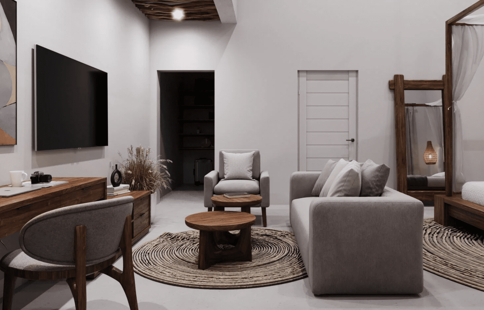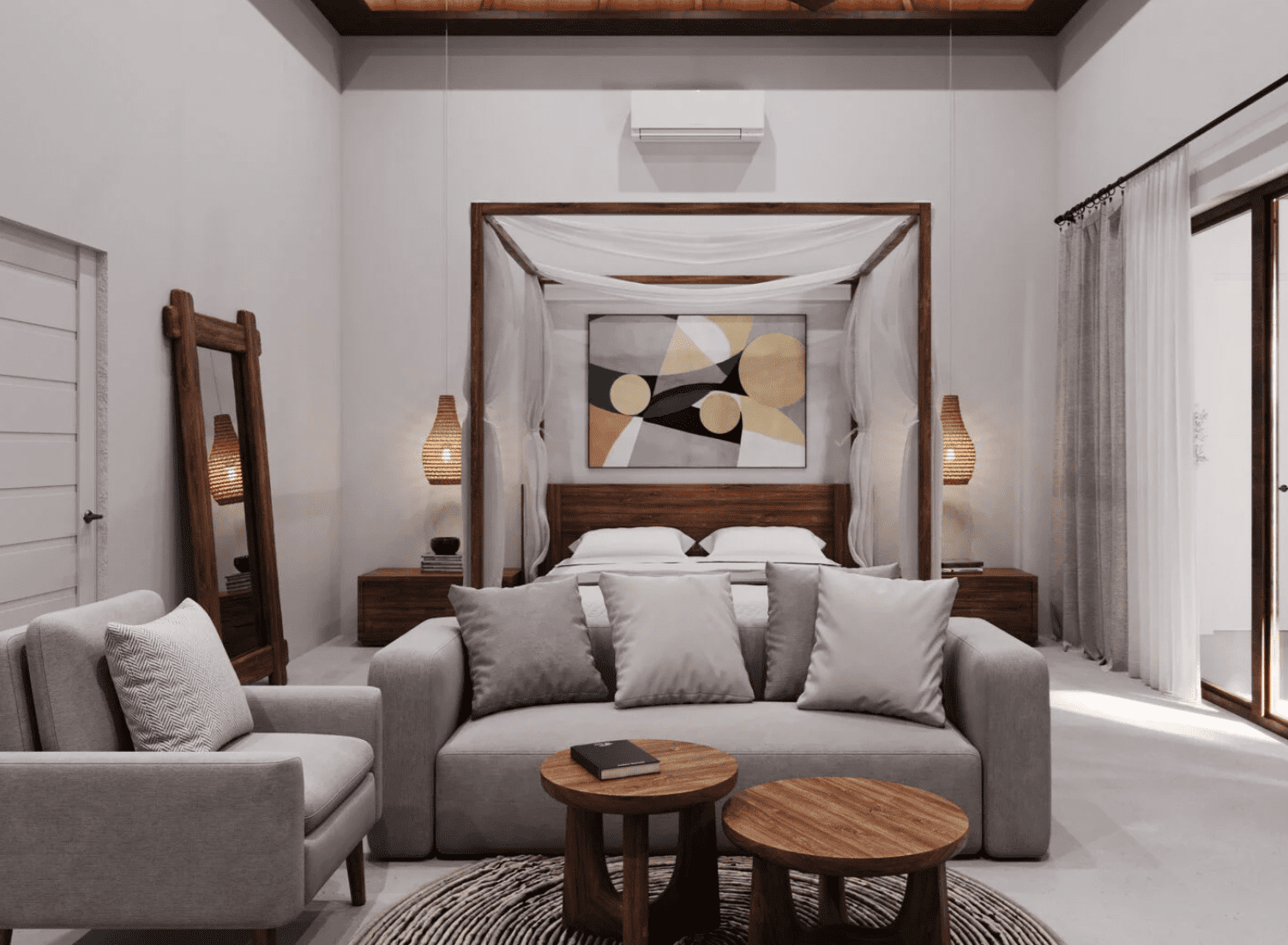 The laconic design seamlessly weaves together Balinese aesthetics and European comfort, creating an inviting atmosphere that feels both exotic and familiar. It's the perfect backdrop for creating lasting memories with your loved ones.