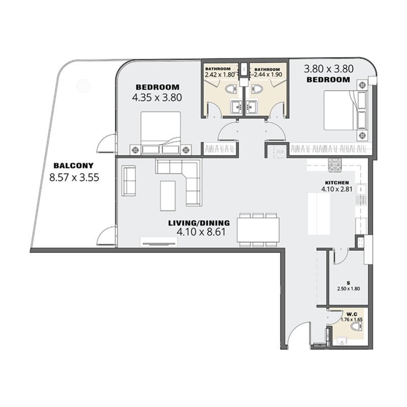 Inspired by the gentle curves of ocean waves, Volna's design showcases wave-like contours that harmoniously integrate with its surroundings. The building's façade presents a timeless aesthetic, while the interiors are thoughtfully curated to provide spacious, light-filled living spaces. High-quality finishes and customizable layouts ensure that each residence caters to the discerning tastes of its inhabitants.
