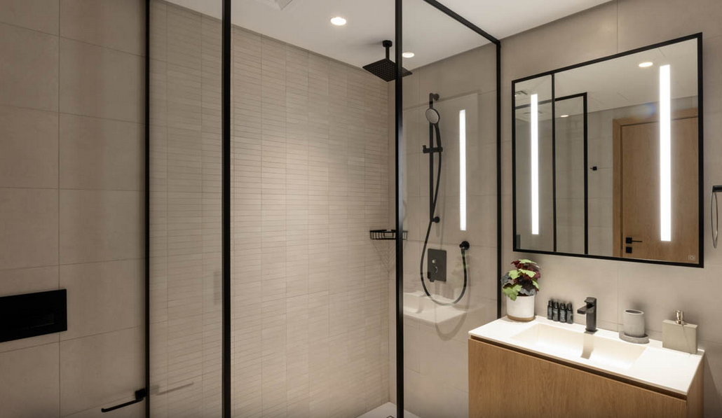 Finished with bespoke laminated European-made doors, tailored handles with a luxurious matte black finish throughout the apartments, fitted wardrobes in all bedrooms and high quality Italian tiles. The apartments also feature European-made LED lighting throughout the units, LEGRAND light switches and power sockets plus Cat 6 wiring with television, telephone and data points to principal reception rooms and bedrooms.