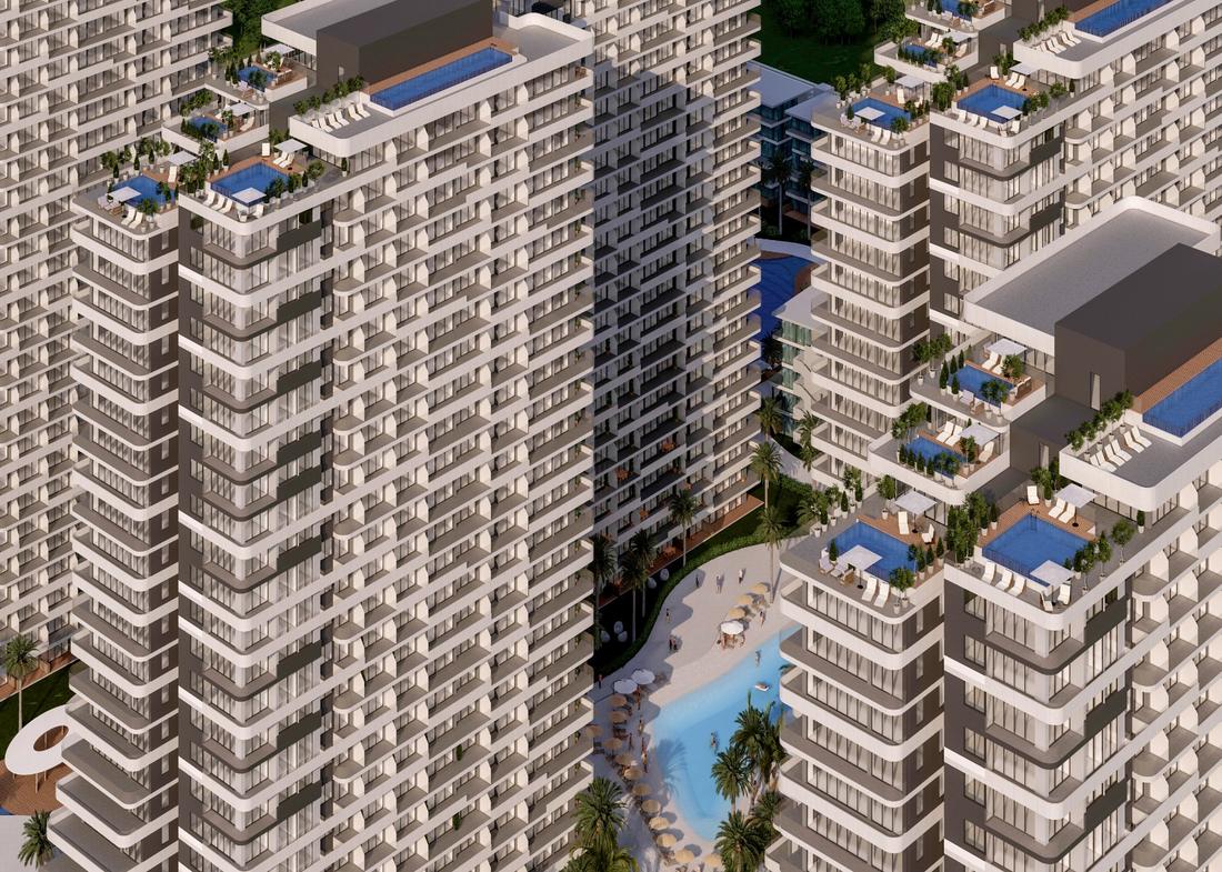 GRAND SAPPHIRE BLU is a luxurious mixed-use project rising on the coast of Northern Cyprus, right next to the beach in İskele. Combining residences, hotels, and commercial areas, it offers a world-class living experience with Mediterranean charm. The project comprises 5 modern blocks and an international 5-star hotel, surrounded by landscaped gardens and uninterrupted sea views.